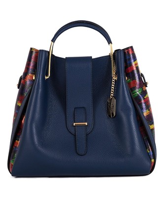Anna Morellini Geometric Leather Satchel - NavyCI$145.00